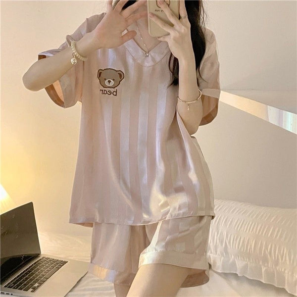 Rose Pink Crisp Short Sleeves V Neck Pajamas